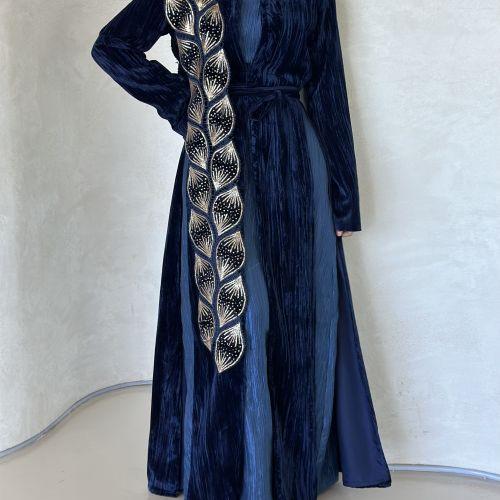 Navy valvet shawl kaftan