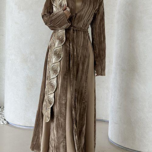 Beige valvet shawl kaftan
