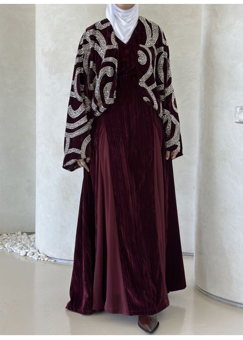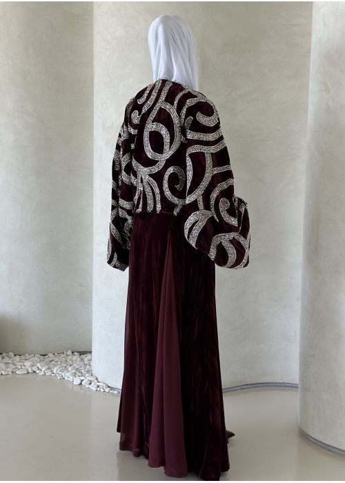 Maroon embroidery jacket kaftan
