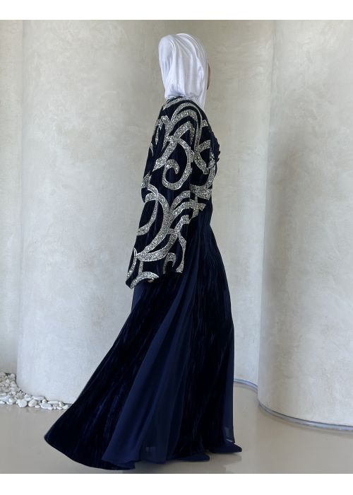 Navy embroidery jacket kaftan