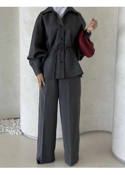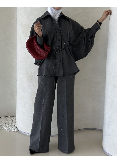 Gray irregular pants set