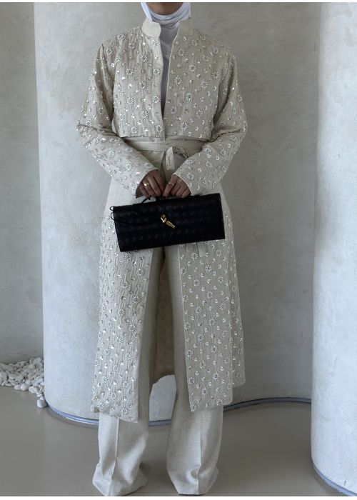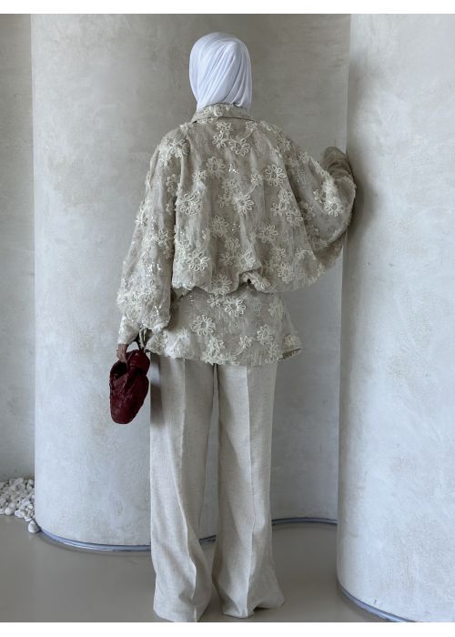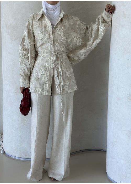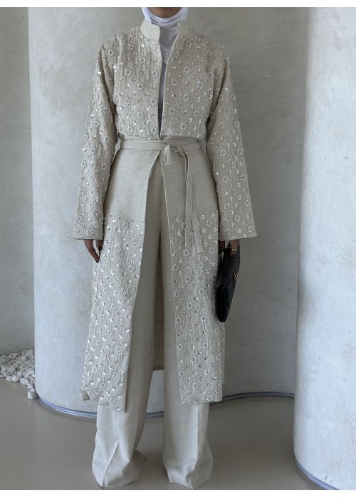 Pearls embroidered linen set