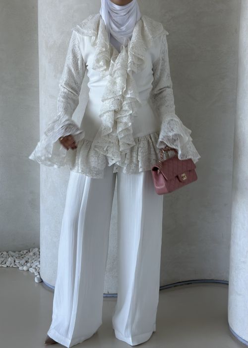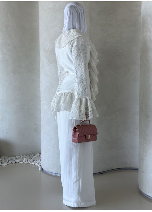 Full short white dantel pants set